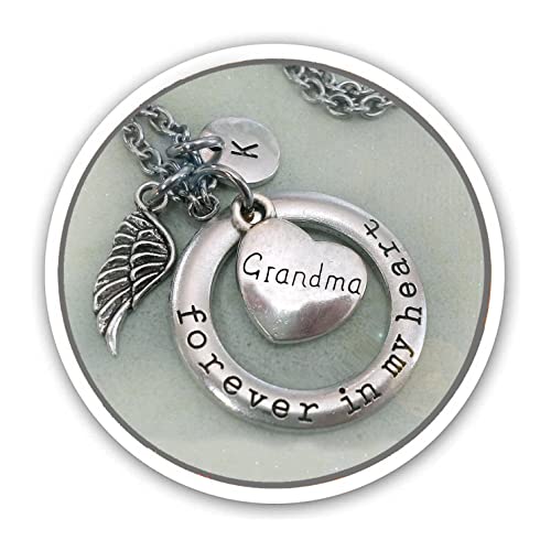 Amazon Com Grandma Memorial Necklace Forever In My Heart Bereavement Sympathy Gift Angel Wing Custom Initial Charm Handmade Products